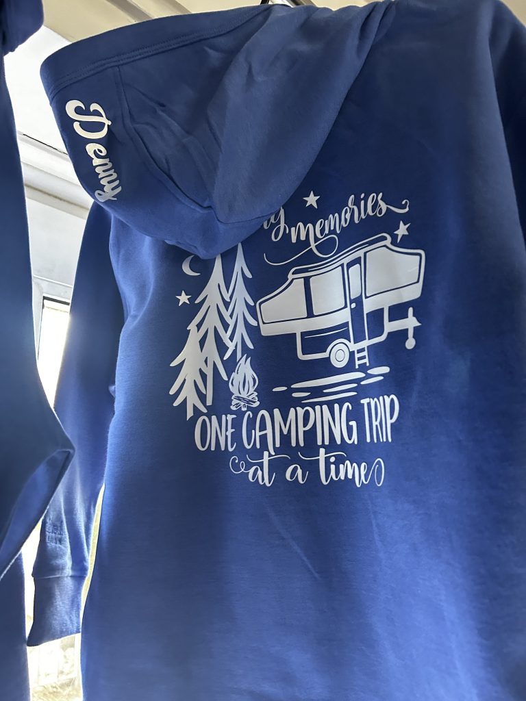 Camping Hoodies. Loads of detail and can have the name on the hood.