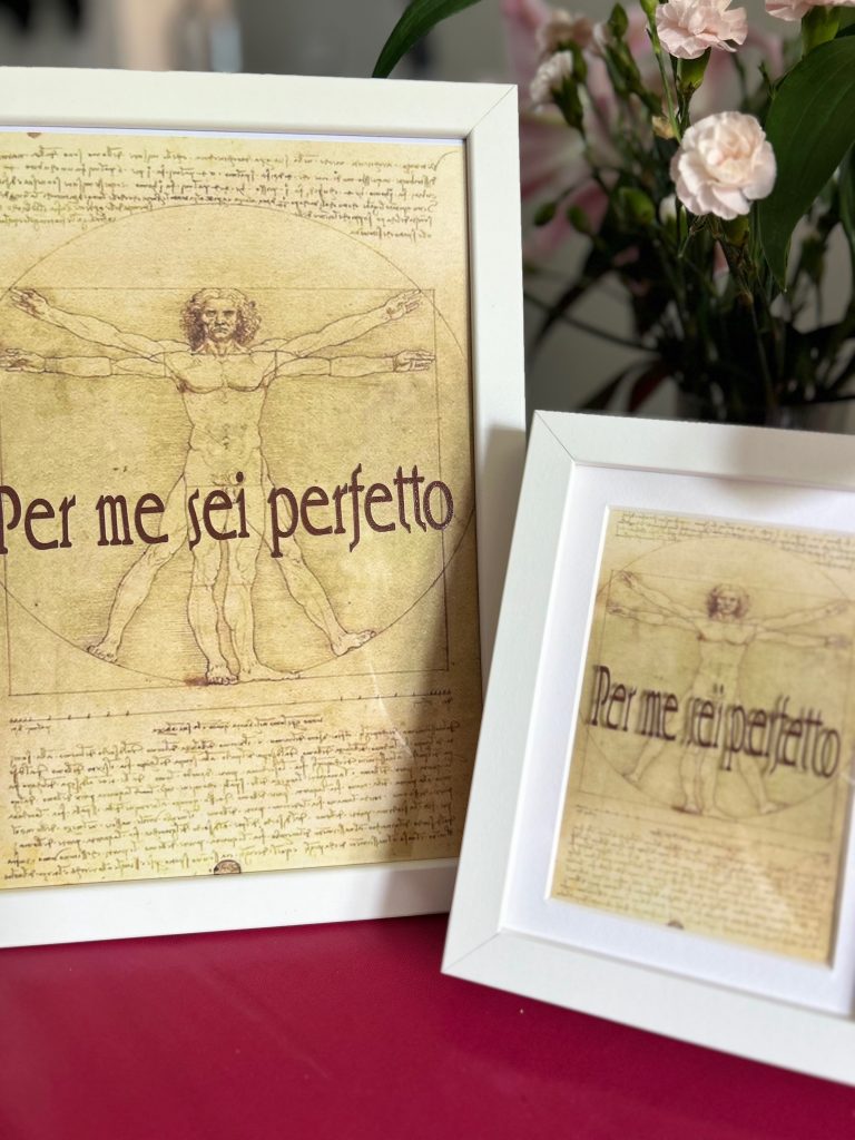 Per me sei perfetto – to me you’re perfect – the perfect gift idea has to include DaVinci’s Vitruvian Man